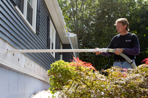 We access wall cavities from the exterior by removing your shingles or siding and drilling holes in the areas where the insulation will be installed. Once we have access, we will blow dense packed insulation into the wall, continuously adjusting the hose to ensure that the space is completely filled with insulation.